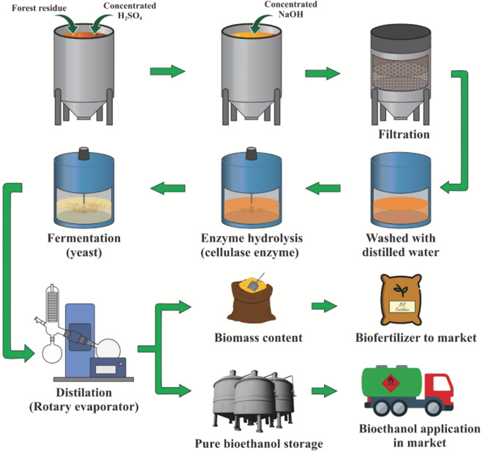 Karbohidrat –> gula –> ethanol –> asam asetat