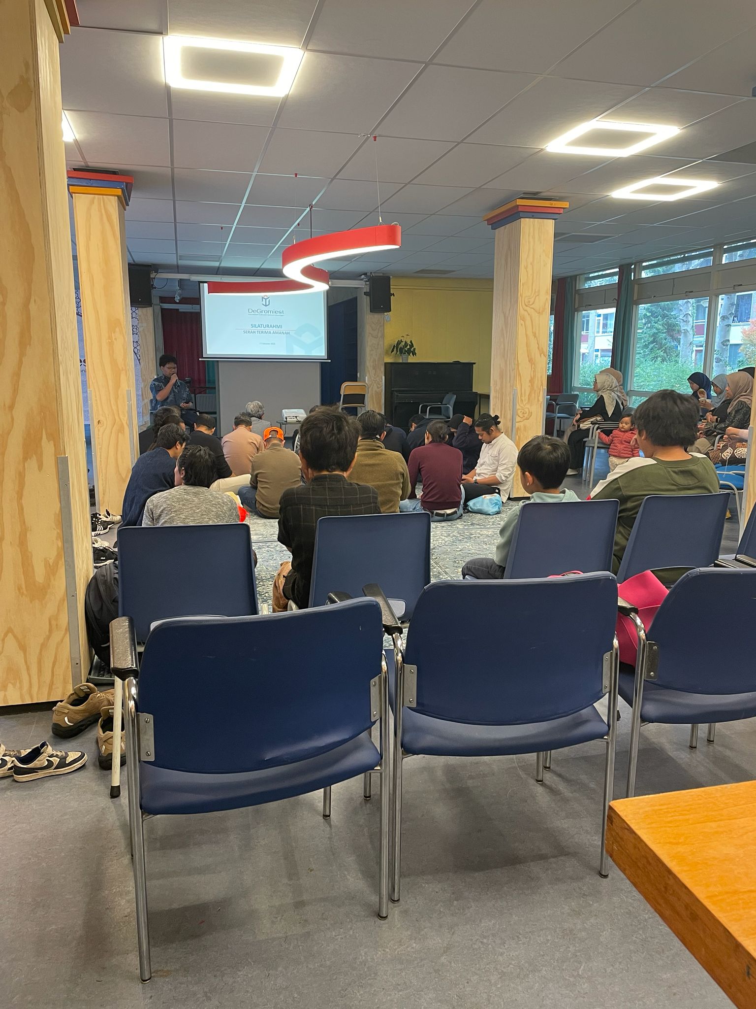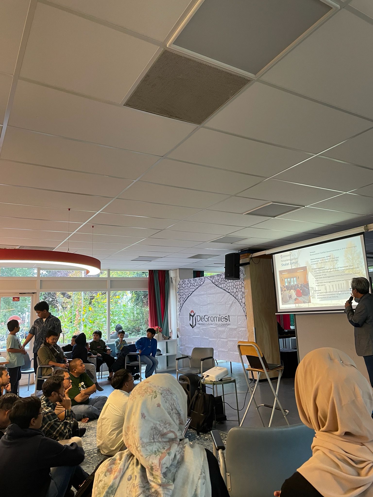Agenda serah terima jabatan dari Ketua DeGromiest lama, Pak Arif Sarwo Wibowo kepada Mas Ade dilaksanakan dalam kegiatan kumpul-kumpul santai dan silaturahmi bertajuk, Makan bareng, cerita bareng, bahagia bareng! pada tanggal 11 Oktober 2025 di Buurtcentruum De Plutozaal. Kegiatan yang dilaksanakan dengan sederhana dan khidmat di Buurtcentrum Plutozaal tersebut, dihadiri oleh lebih dari 50 jamaah yang terdiri dari para mahasiswa S1-S3 beserta keluarga dan para diaspora.